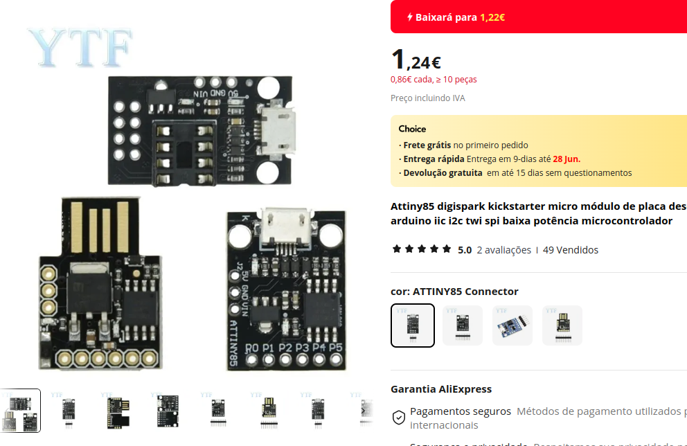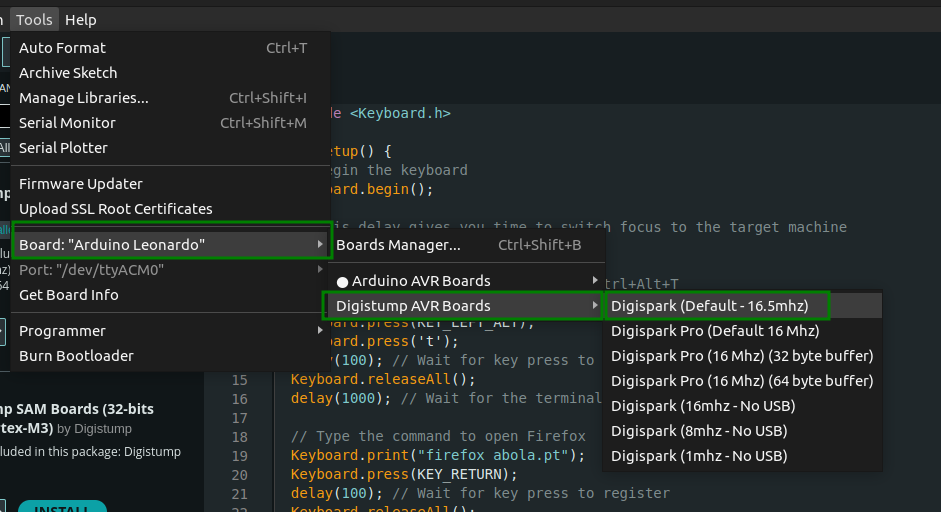 * Board > Digistump > Digispark (Default - 16.5 mhz)